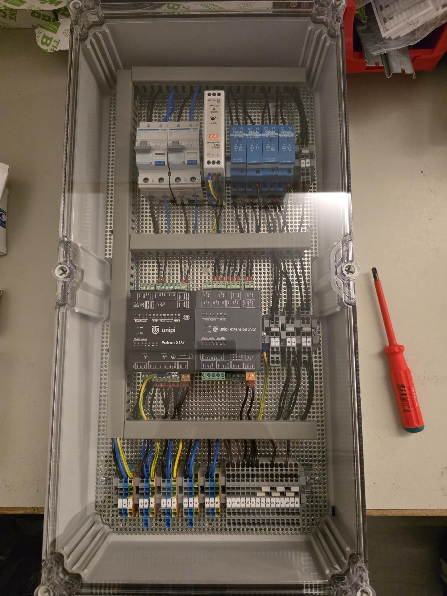 Nous avons ainsi conçu et assemblé un coffret MCR (Mesure, Commande, Régulation) spécifiquement adapté au site.